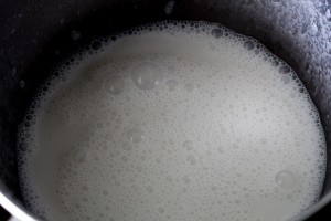 - Add in the coconut milk and warm it up.